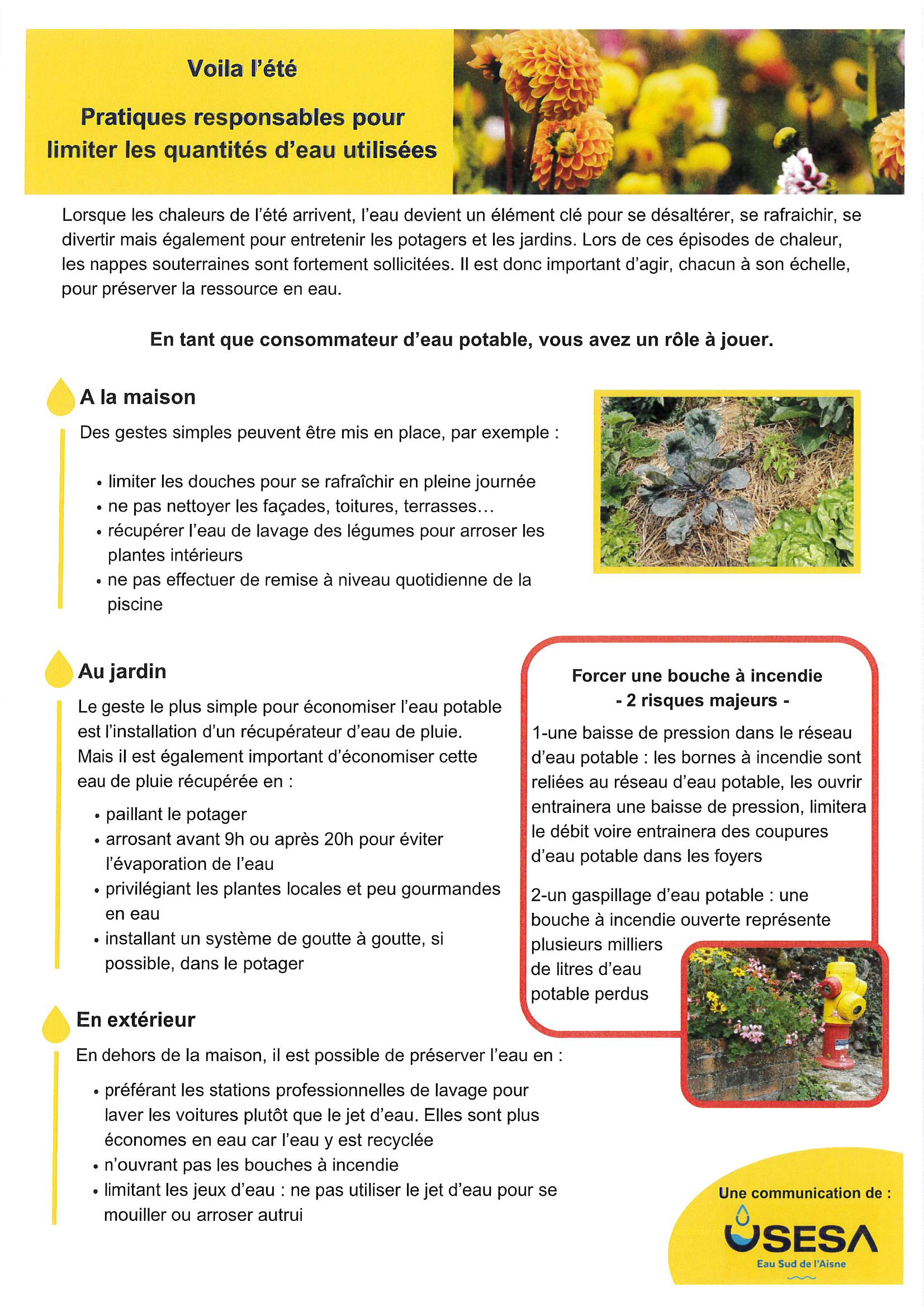 En cette période estivale et dans le contexte de la protection de la ressource en eau, l’USESA vous propose un article sur la sobriété en eau.