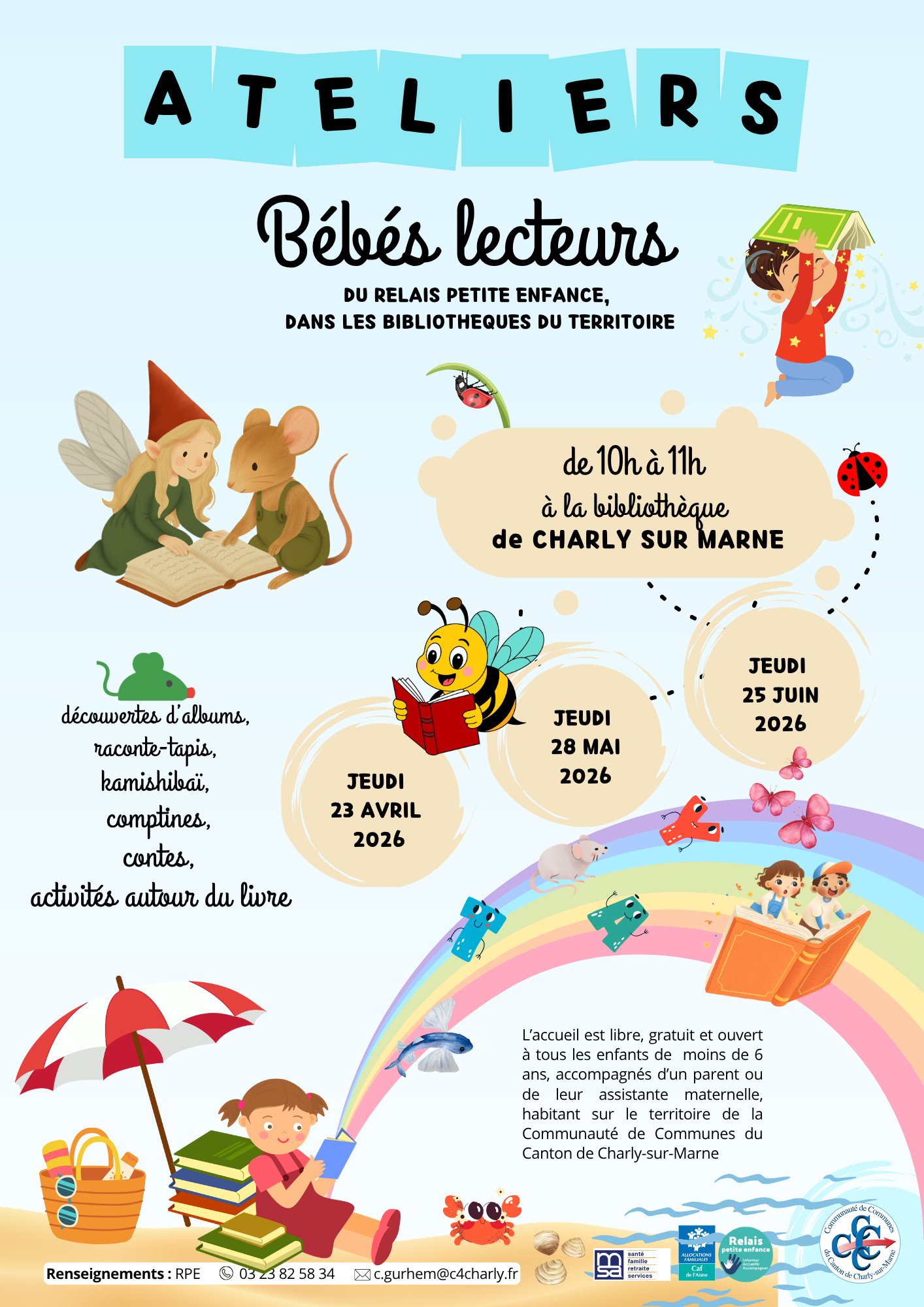 Pour plus d’informations, n’hésitez pas à consulter la page dédiée au Relais Petite Enfance :https://www.c4-charlysurmarne.fr/-R...->Ces ateliers sont gratuits et sans inscription.